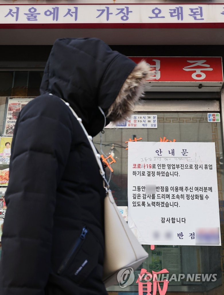 코로나19로 인한 영업부진으로 휴업한 음식점