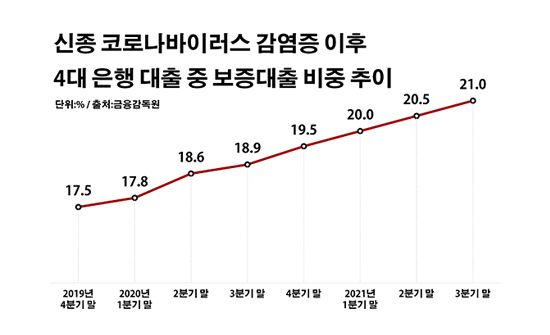 은행 보증대출 비중 '역대 최고'…코로나 후폭풍 '뇌관'