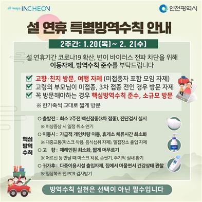 인천시, 설 연휴 코로나19 특별방역대책 추진