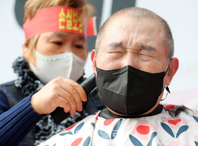"PC방도, 미용실도, 카페도 망했다"…자영업자 299명 눈물의 삭발식