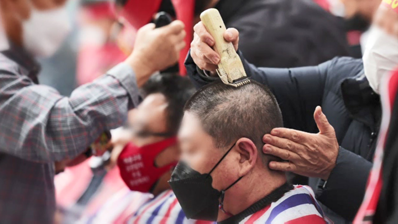 "못 버텨 총파산 선언" 자영업자 299명 '눈물의 삭발식'