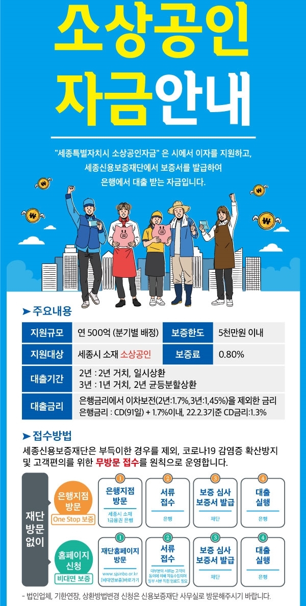 세종신보재단, 500억 규모 소상공인자금 지원