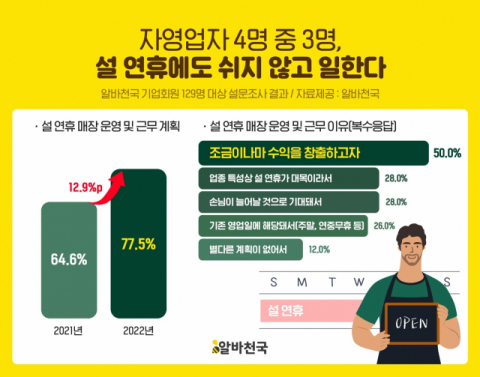 자영업자 77.5% "설 연휴 안쉬고 영업할 것"