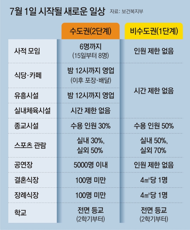7월부터 일상 바뀐다…모임인원↑ 밤12시 영업,접종자 야외 노마스크