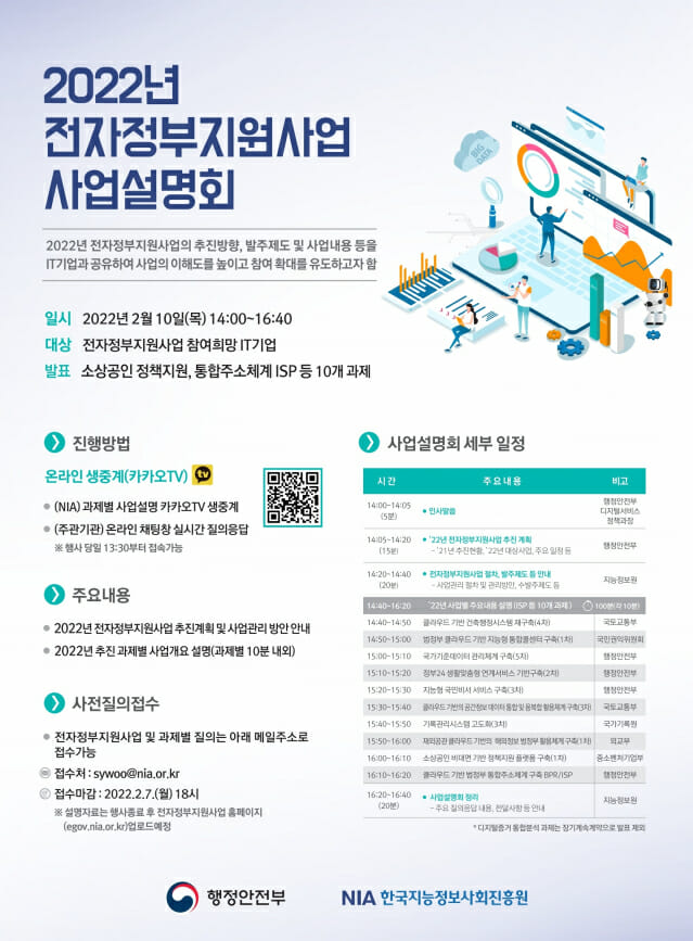 행정안전부, 올해 전자정부 지원사업 11개 과제 총 694억 투자