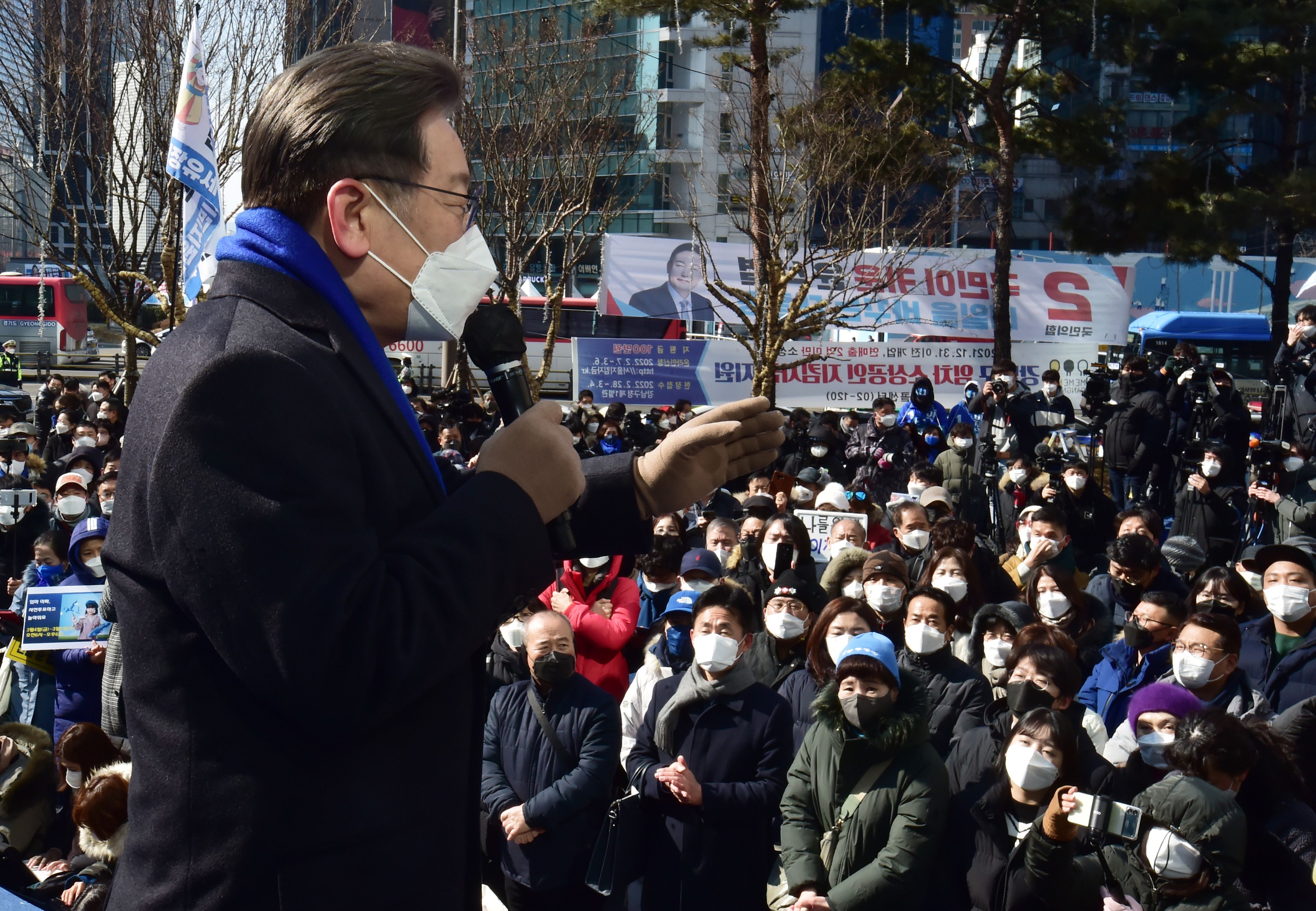 이재명, 강남역 유세 “코로나 봉쇄 불가능, 스마트 방역하고 경제 부스터샷”