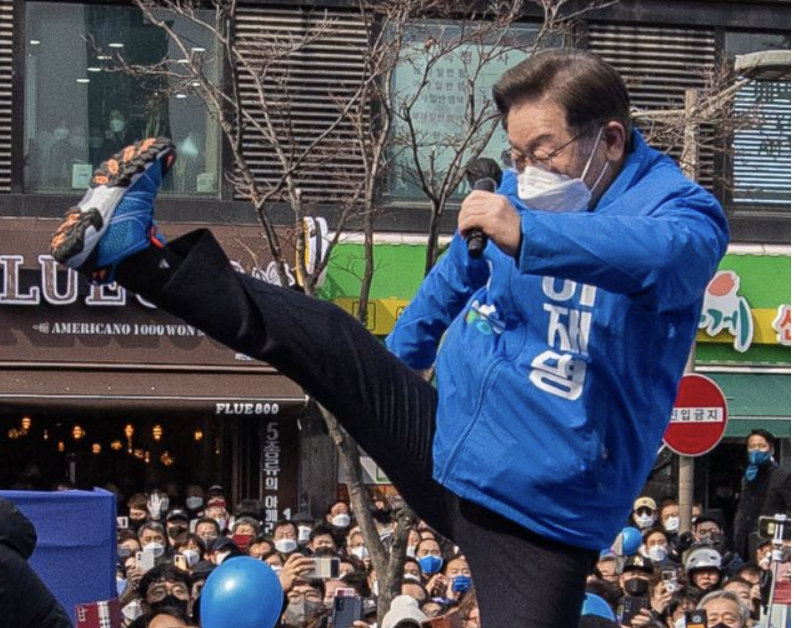 [영상] 이재명, '코로나 퇴치' 발차기…尹 어퍼컷 세리머니 의식했나