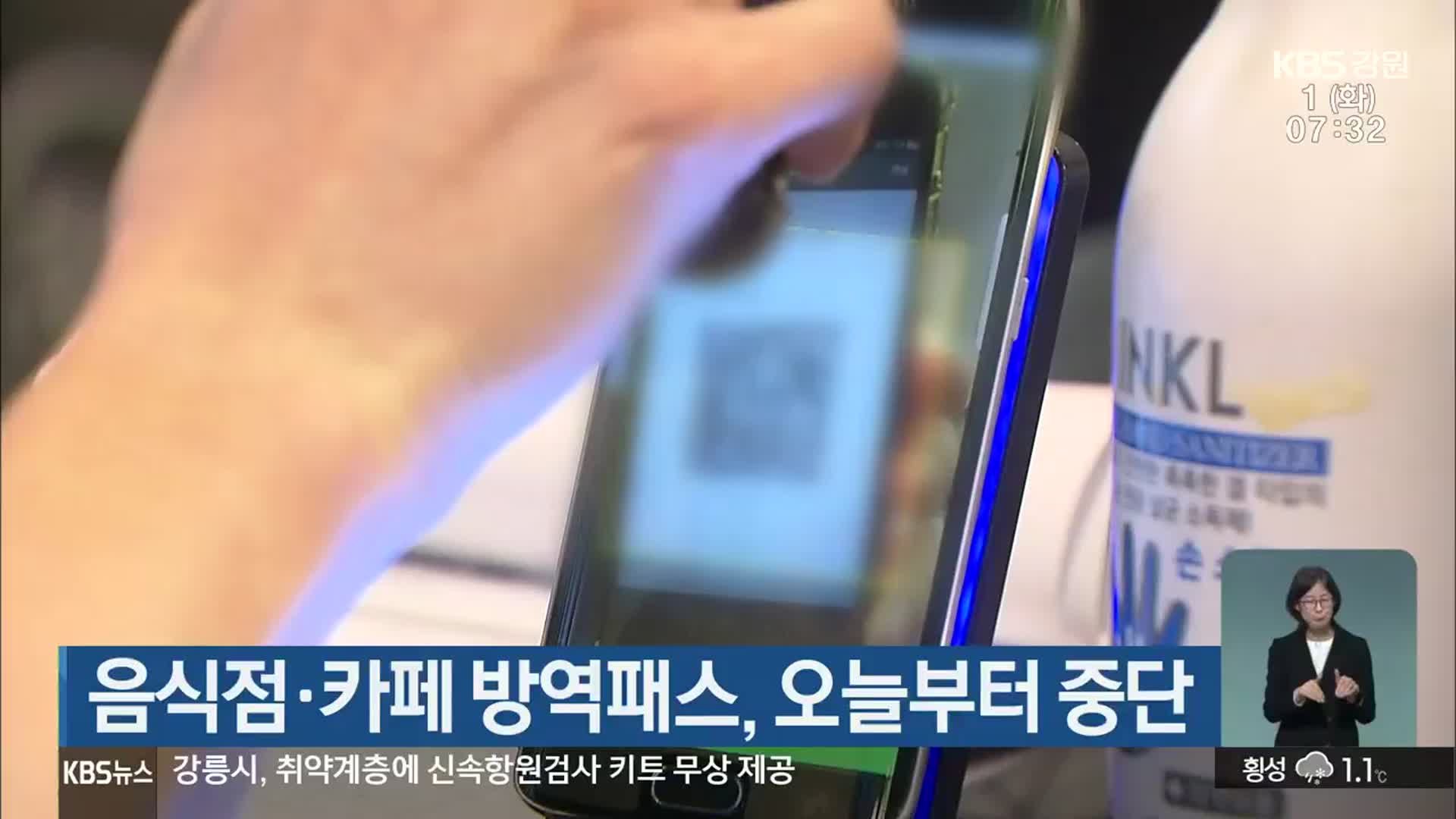 강원도, 음식점·카페 방역패스, 오늘부터 중단