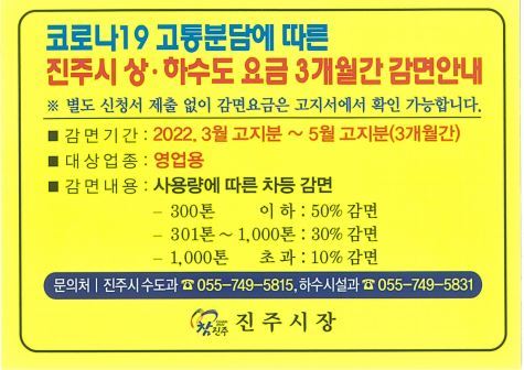 진주시, 코로나 극복 영업용 상·하수도료 감면 시행