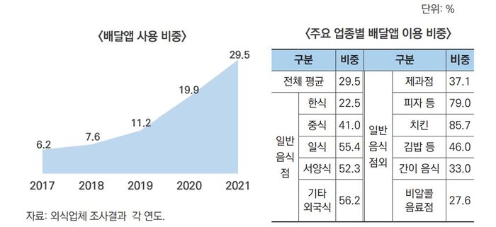 외식업체, 코로나19 이후 배달앱 방식 5배↑