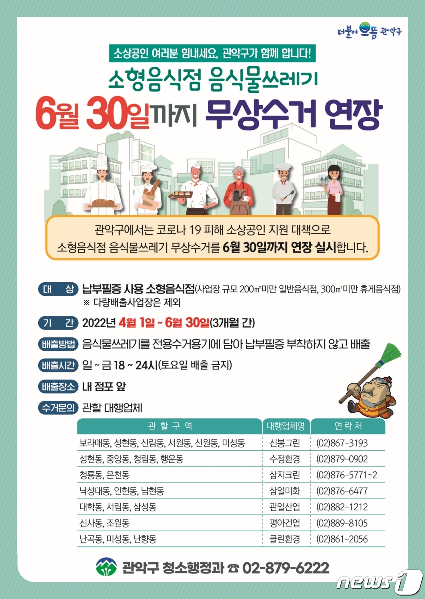 관악구 소형음식점 음식물쓰레기 무상수거, 6월말까지 연장