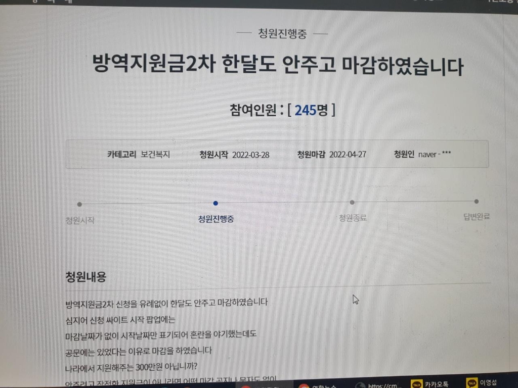 "2차 방역지원금 한달도 안돼 마감…추가기간 줘야" 국민청원 등장