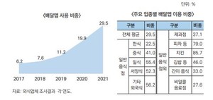 음식점 3곳 중 1곳은 배달앱 사용... 치킨집 85.7% 압도적