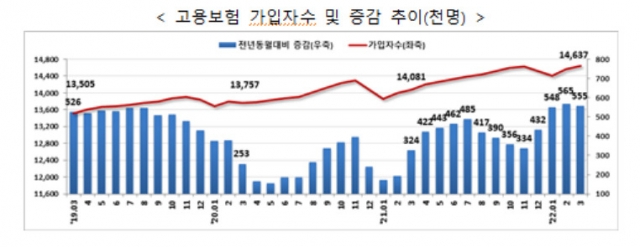 고용보험 가입자 석달째 50만명 이상 ↑..."숙박·음식점은 아직..."