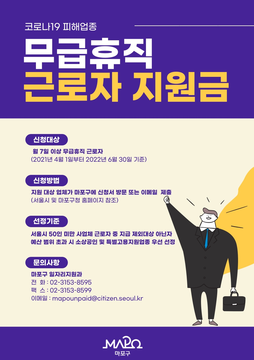 마포구, 소기업 무급 휴직 근로자에게 최대 150만원 지원