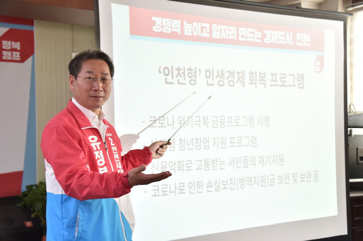 유정복 인천시장 후보 "코로나 피해 16만 자영업자 실질 보상 추진"