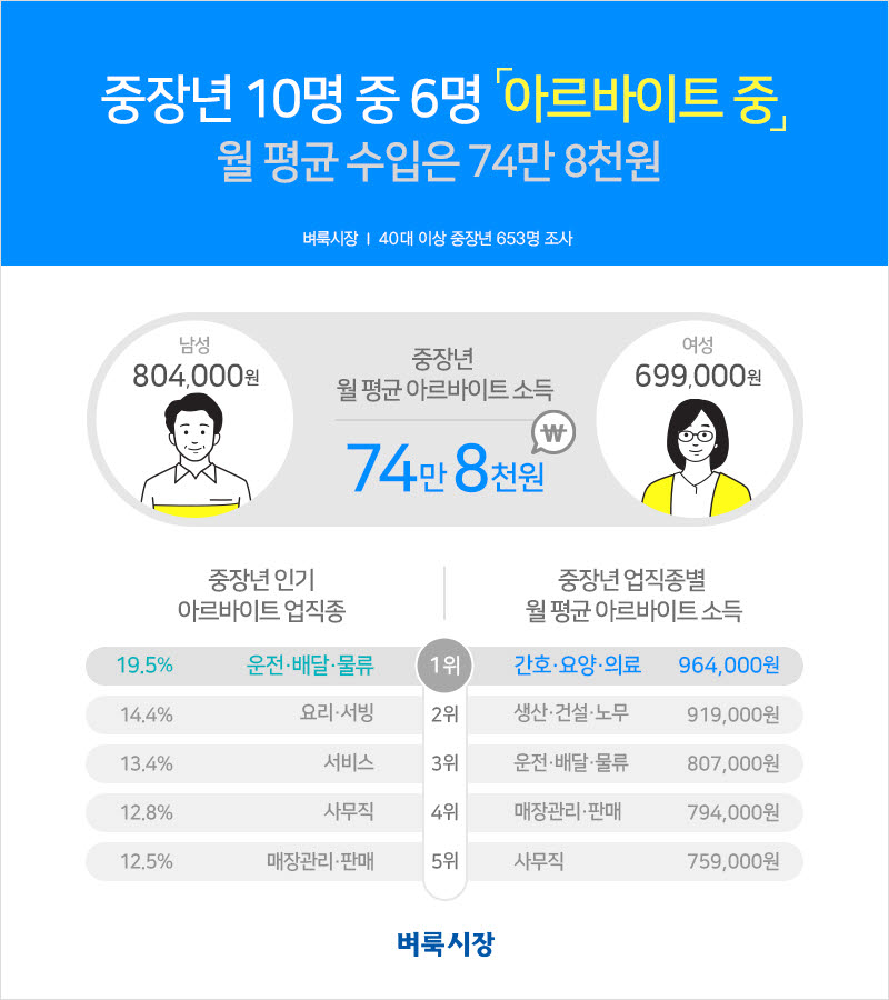 중장년 60% 알바 중... 코로나19로 생계형 'N잡러' 증가