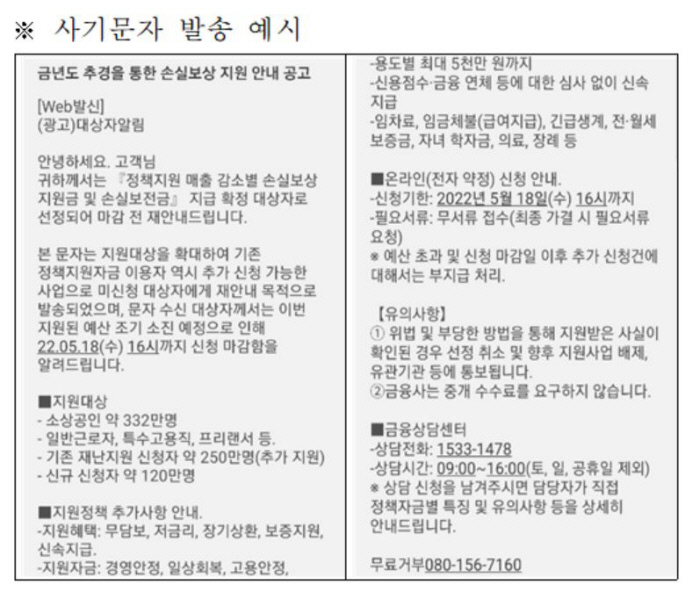 소상공인 손실보상 사기문자 기승…"보전금 추경 확정 후 지급"