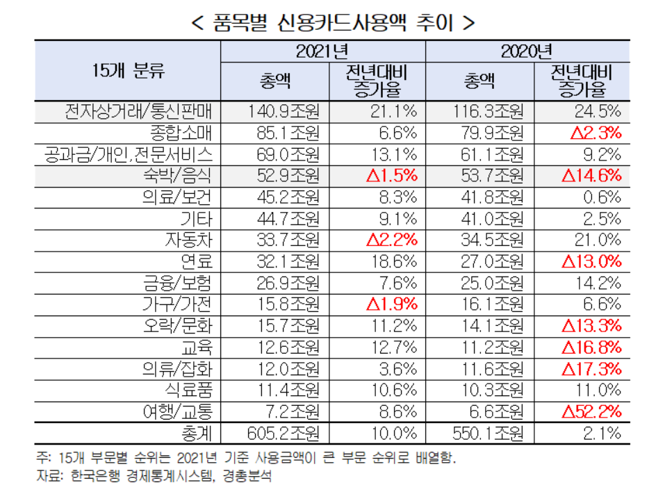 작년 카드 사용 늘었지만… 숙박·음식 소비는 코로나 전보다 ‘시들’