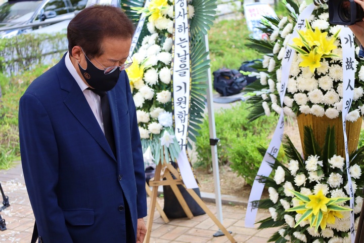 홍준표, 자영업자 분향소 조문…"文정권이 죽음 몰아가"