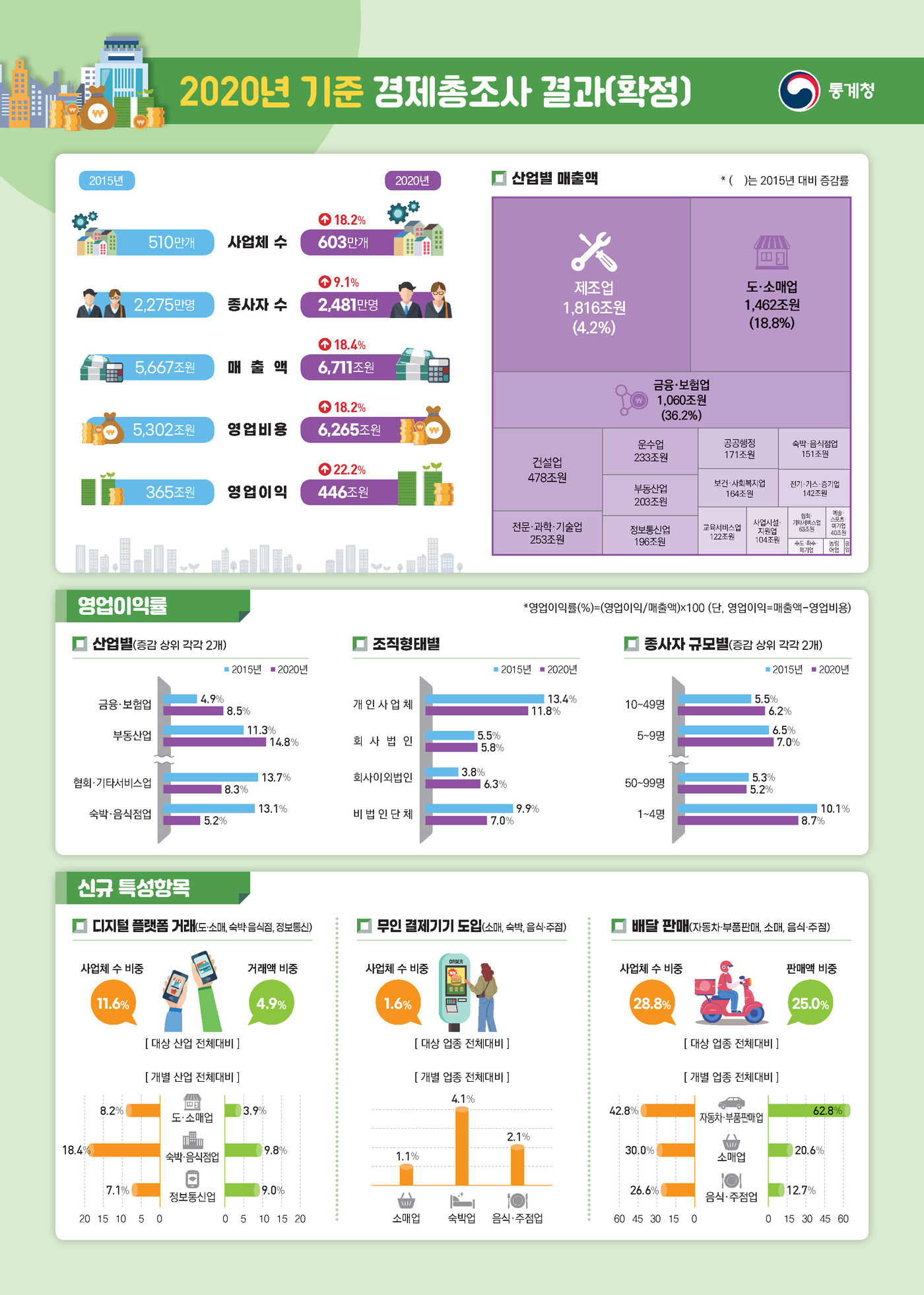 코로나에 5년새 숙박음식점 영업이익률 7.9%↓…금융보험·부동산업은 ↑