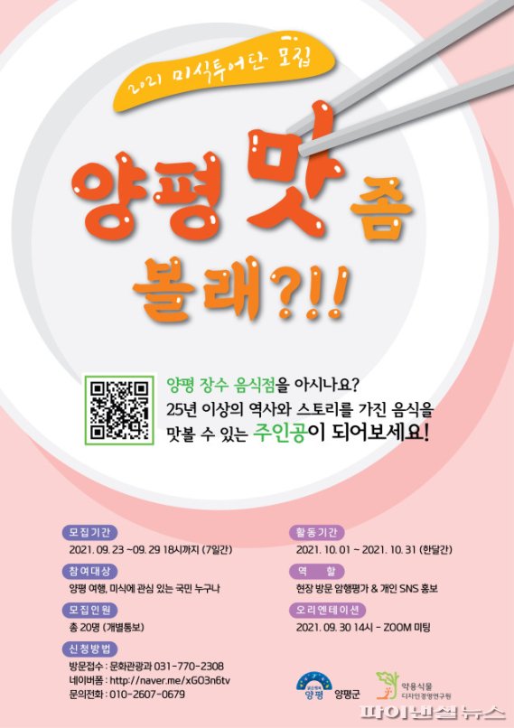 양평 맛집투어단 모집…장수음식점 선정