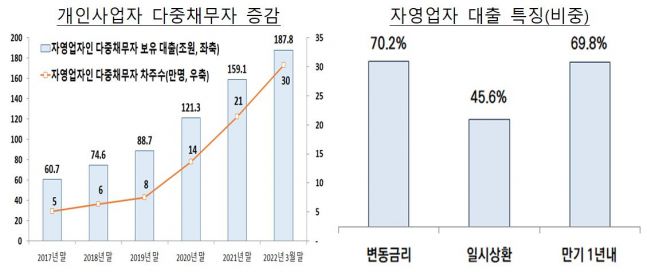 코로나19로 다중채무 자영업자 폭증...3월말 현재 30만명 188조