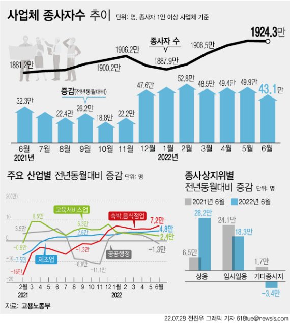 숙박·음식업 종사자 8개월 연속↑ 코로나 확산에 꺾이나