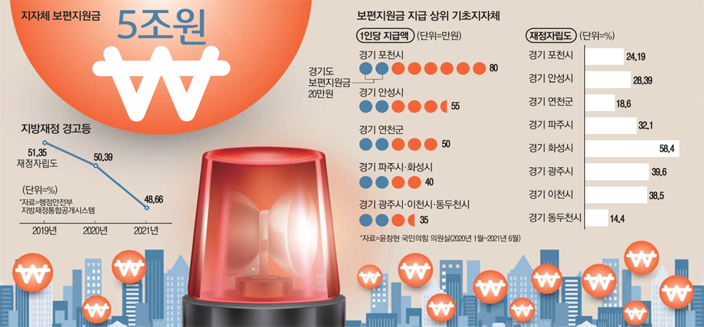"너나없이 주더니" 재난지원금 5조 뿌린 지자체…재정자립도 50% 무너졌다