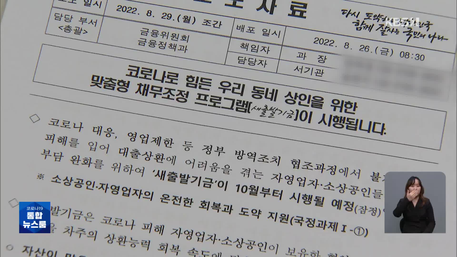 코로나 피해 소상공인 ‘원금감면’ 등 채무조정 10월부터 시행
