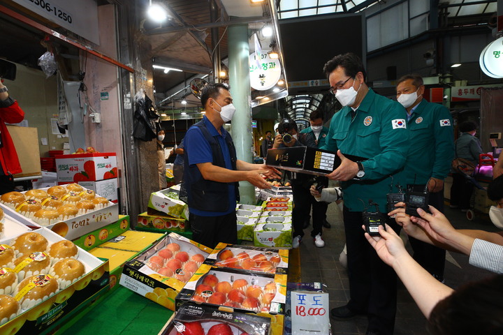 정부, 전통시장 수해 복구 점검…"추석 전 재난금 400만원 지원"