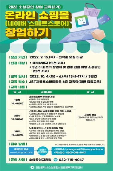 인천시, 소상공인과 예비창업자 온라인 쇼핑몰 창업 교육