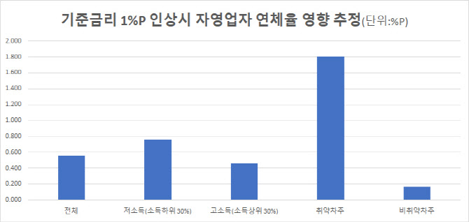기준금리 1%p 오르면 취약 자영업자 연체율 1.8%p 오른다(종합)