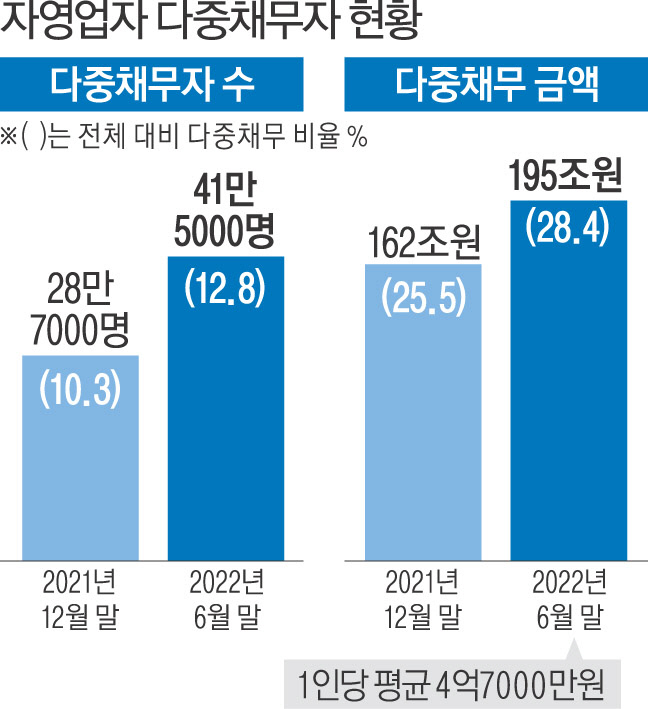 ‘다중채무 자영업자’ 반년 새 45% 급증