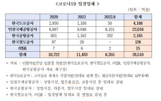 [2022국감]철도·공항·고속도로 휴게소 소상공인 3조원 지원…정부 보전 0원