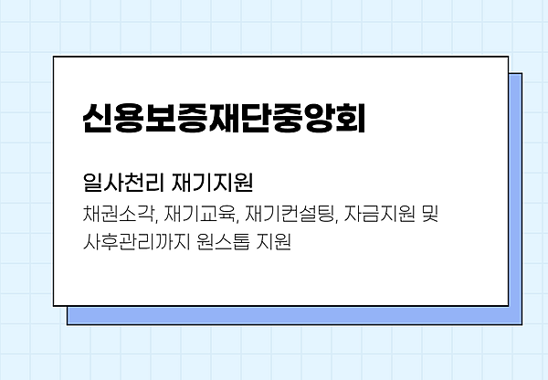 💡신용보증재단중앙회의 재기컨설팅에 대해 궁금한 점은 042-480-4057로 전화문의해주세요!