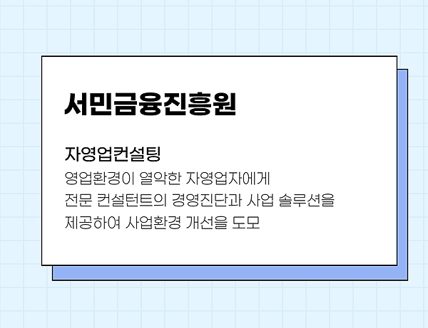 💡서민금융진흥원의 자영업컨설팅에 대해 궁금한 점은 02-2128-8312로 전화문의해주세요!
