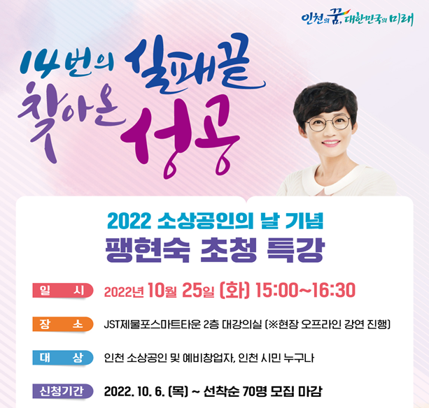 인천시, 25일 팽현숙 초청 소상공인 특강 개최
