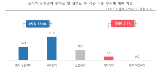 플랫폼 이용 소상공인 72.4% "플랫폼 수수료·광고비 부담 된다"