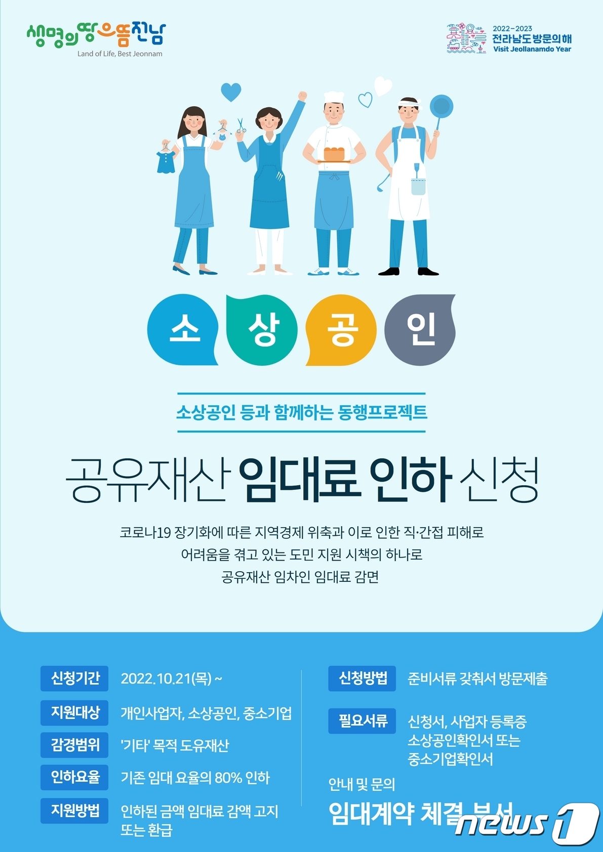전남도, 도유재산 사용 소상공인 임대료 감경…12월까지 최대 80%