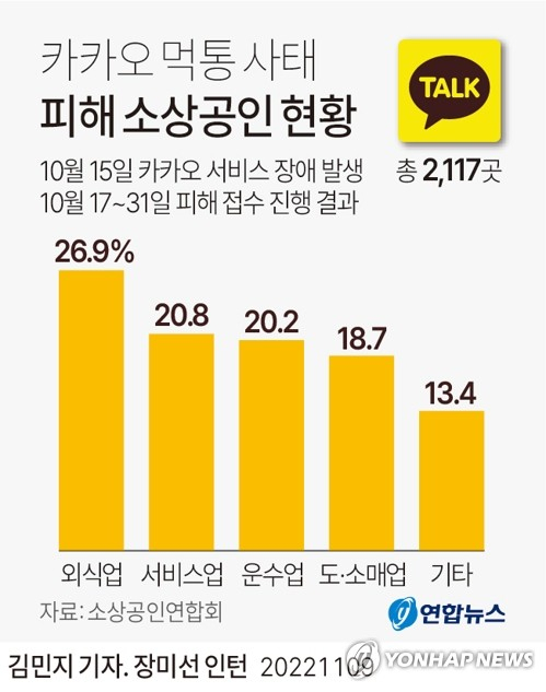 카카오 먹통 소상공인 피해 2117건 확인.."실질적 피해보상 마련해야"