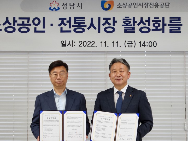소진공, 성남시와 소상공인·전통시장 활성화 업무협약