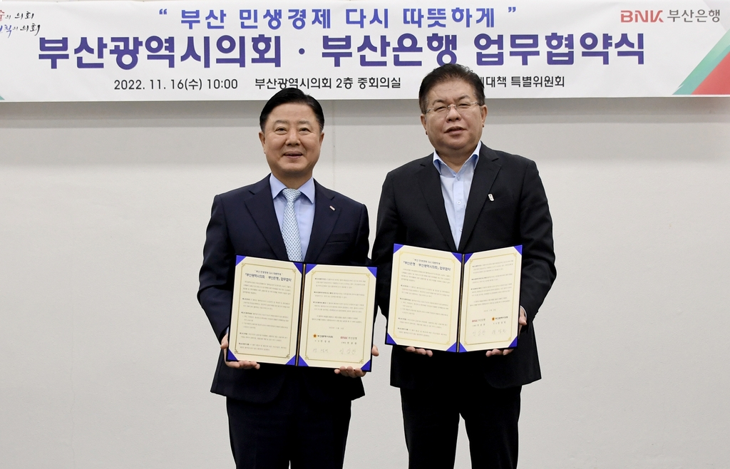부산은행·부산시의회, 소상공인·청년 500억 지원 협약