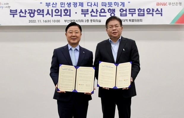 부산은행, 부산시의회와 서민 금융지원 업무 협약
