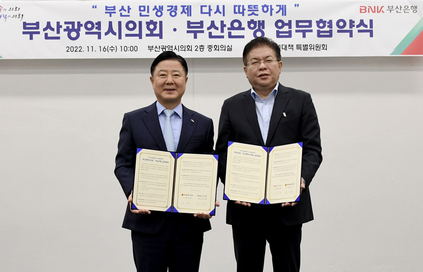 부산은행·부산시의회, 소상공인·청년 500억 지원 '맞손'
