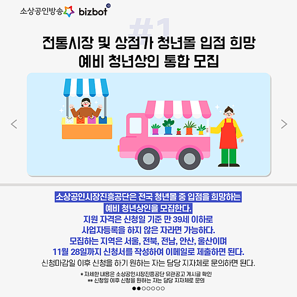 1. 전통시장 및 상점가 청년몰 입점 희망 예비 청년상인 통합 모집