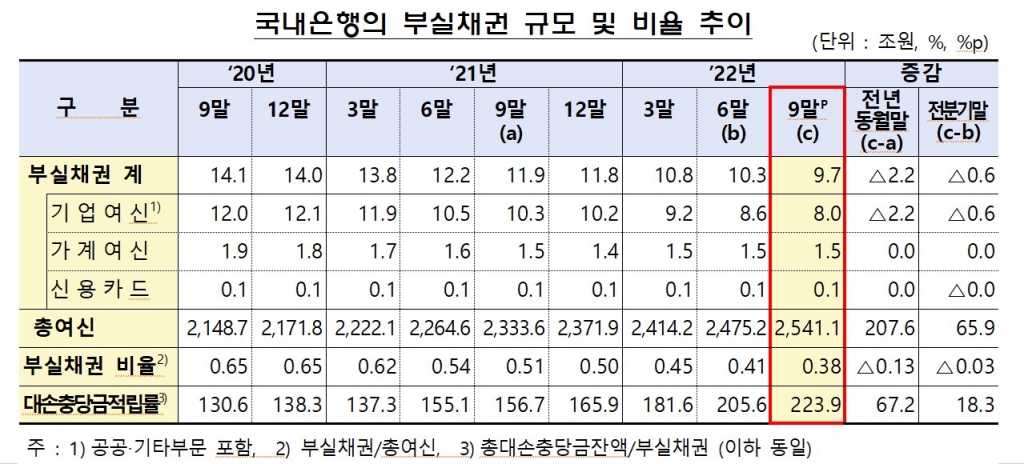 9월말 은행 부실채권 비율 0.38% '코로나 금융지원 착시'