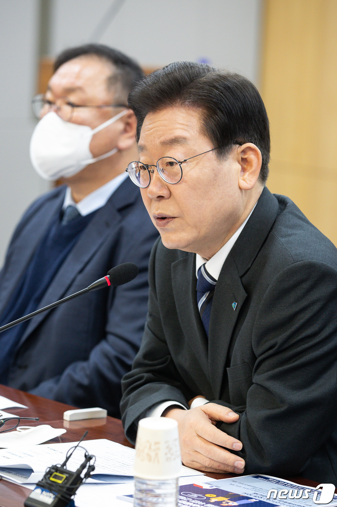 코로나19 피해 소상공인·자영업자 만나 발언하는 이재명 민주당 대표