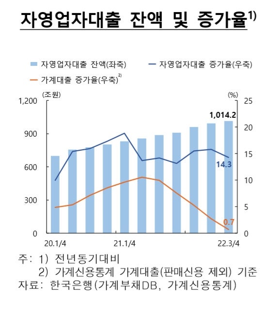 "8% 고금리에도 살려고 대출 행렬"…자영업자 대출 사상 처음 1000조 넘었다[...