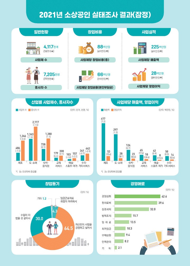 "소상공인 줄었지만 사업체당 영업익 증가…20·30대↑"